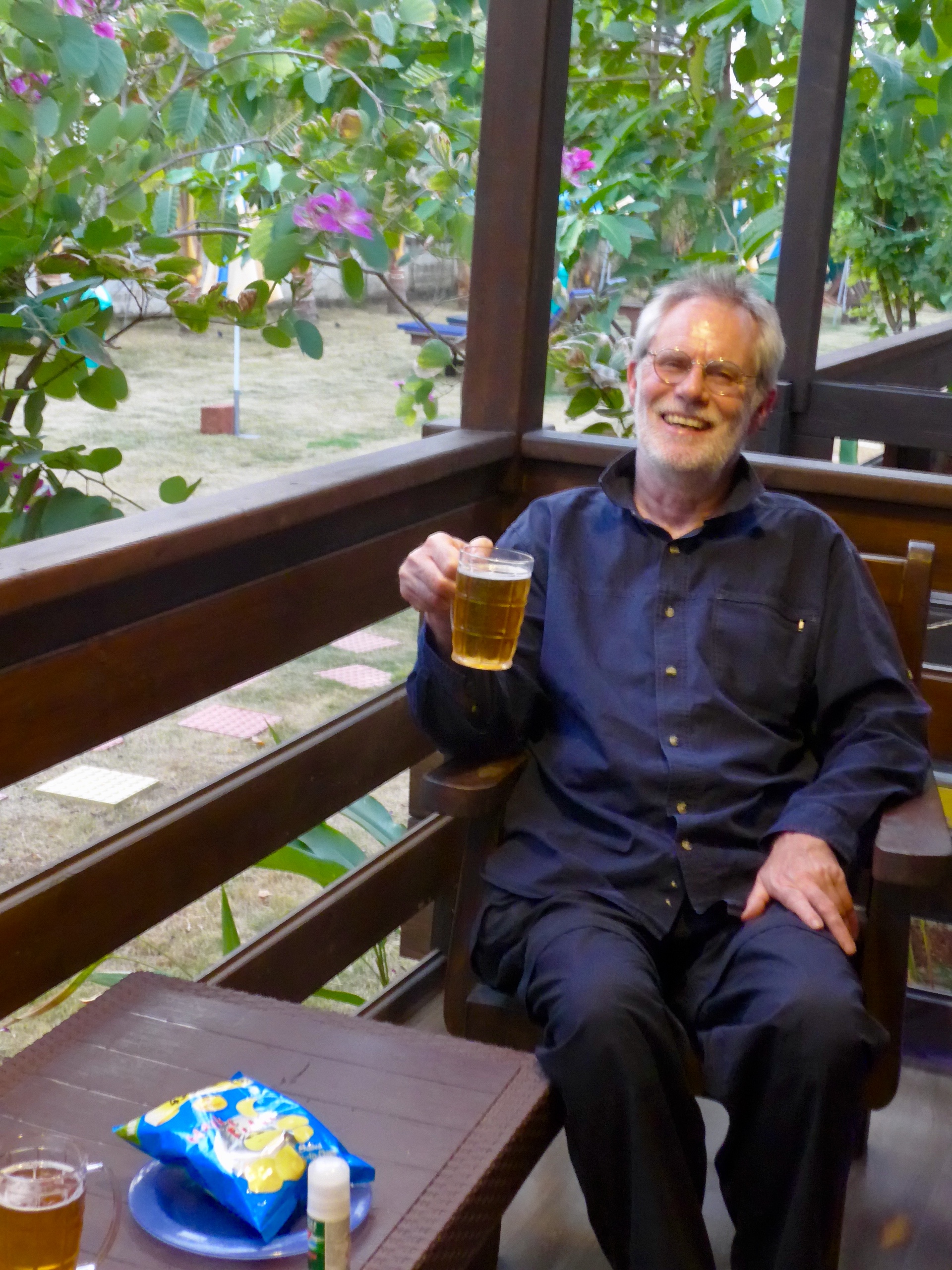 The tigers proved elusive but Jim did have to grapple with a giant spider in the bathroom and wrestle it to the floor. Luckily the spider conceded. On safari we saw four wild elephants coming down to a waterhole in the evening to drink, and we did meet a rare sloth bear. This belied its name by galumphing rapidly away when it saw us.